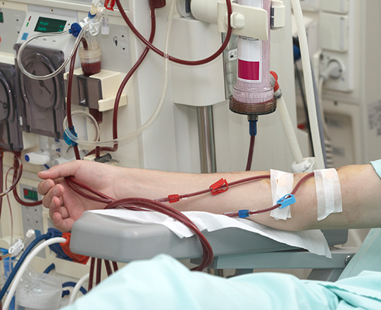 Patients requiring long term haemodialysis are best served with an arteriovenous fistula. These are surgically created by joining an artery to a vein, usually at the wrist or the elbow. After the operation and over a period of 6 to 12 weeks the blood flow through the fistula increases to the point where there is enough flow to support haemodialysis. Once this is the case the fistula can be accessed with needles through the skin and into the vein. Blood is then filtered via a dialysis machine.